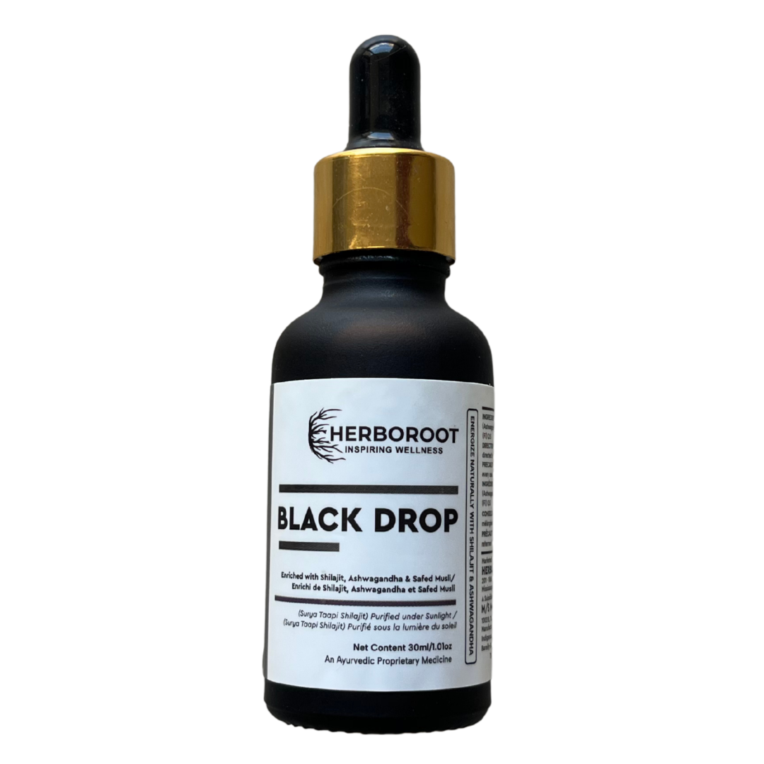 Black Drop (Shilajit Drops) is a premium-quality shilajit formulation crafted with a powerful blend of Ashwagandha, Safed Musli, Safed Ark, and Zafran. Traditionally valued for its revitalizing properties, this formulation is designed to support overall vitality, stamina, and daily energy levels. Rich in fulvic acid and naturally occurring minerals, Black Drop helps nourish the body, support physical endurance, and promote recovery as part of an active and balanced lifestyle.